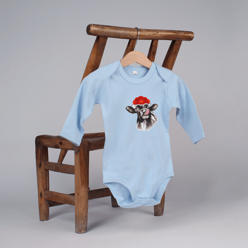 Baby Body langarm – Bollenhut Kuh mit Zunge