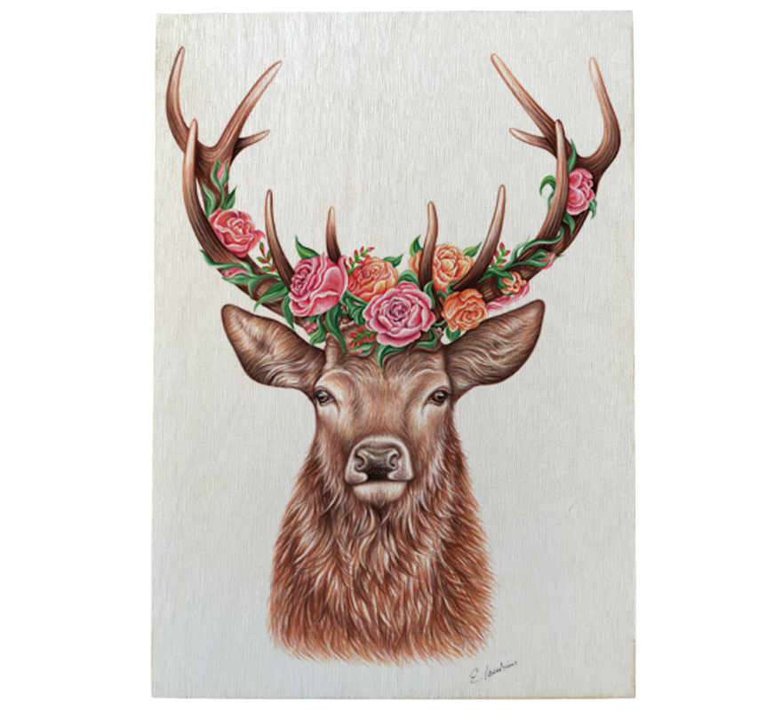 • gezeichnetes Motiv mit toller Farbbrillanz auf weiß-lasiertem Holz