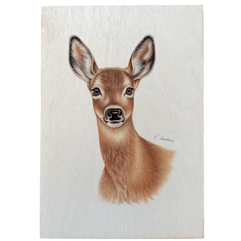 • Gezeichnetes Motiv mit toller Farbbrillanz auf  weiß-lasiertem  Holz