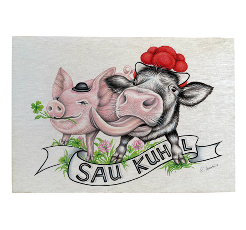 • gezeichnetes Motiv mit toller Farbbrillanz auf weiß-lasiertem Holz