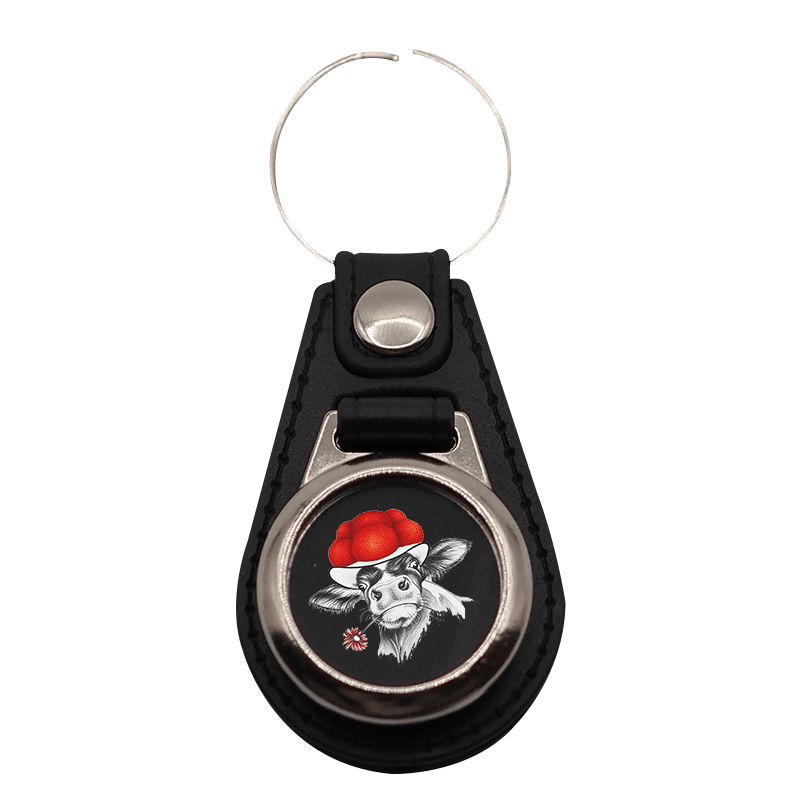 Schlüsselanhänger rund Bollenhut Kuh mit Blume