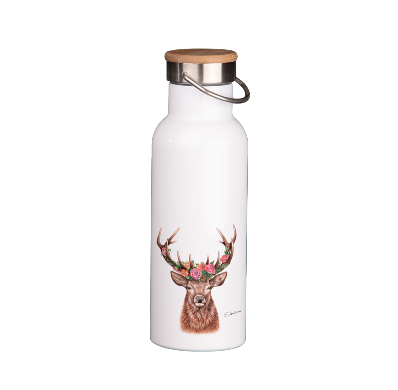 Thermoflasche mit Bambusdeckel – Blumenhirsch