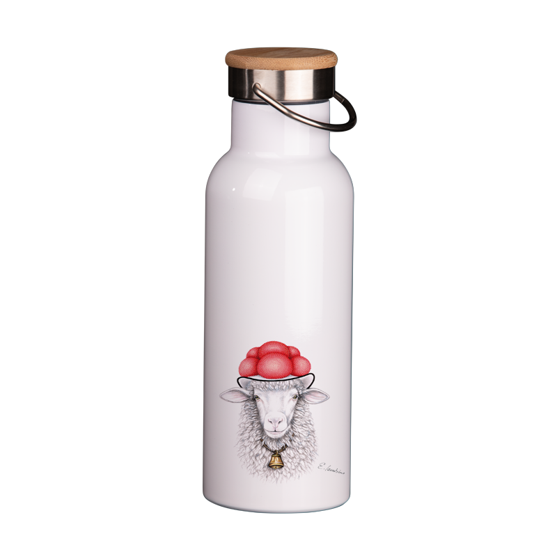 Thermoflasche mit Bambusdeckel – Bollenhut Schaf