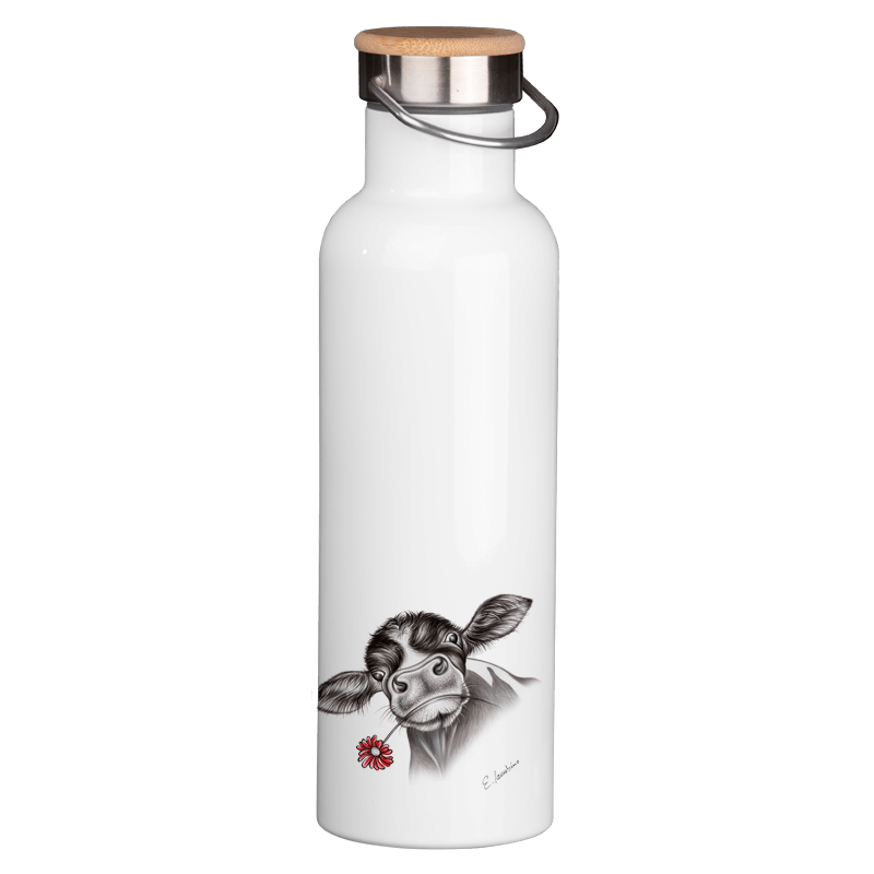 Thermoflasche mit Bambusdeckel – Kalb mit Blume