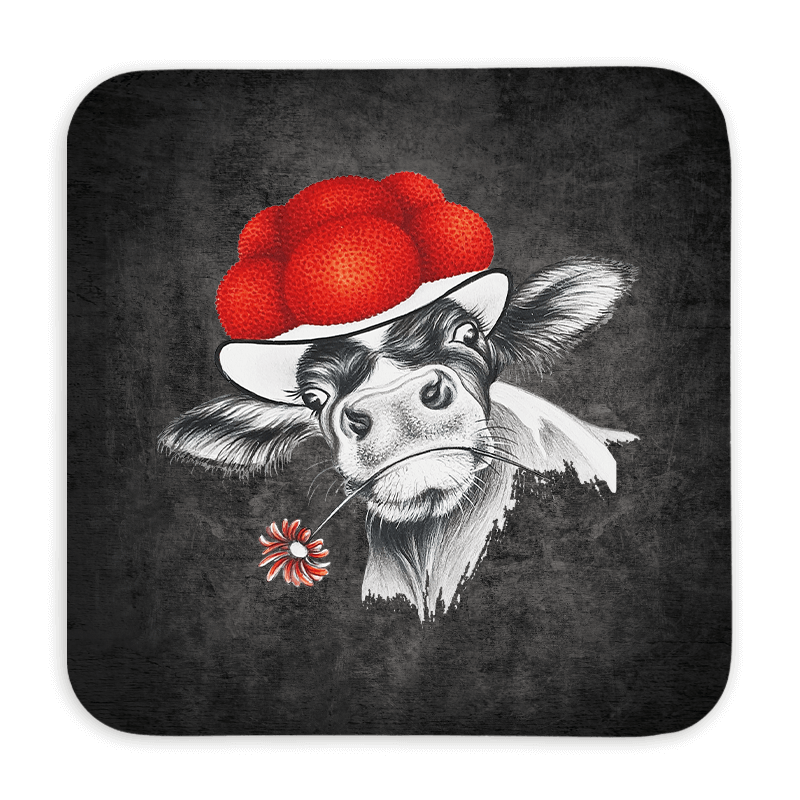 Untersetzer 9×9 Black Edition – Bollenhut Kuh mit Blume